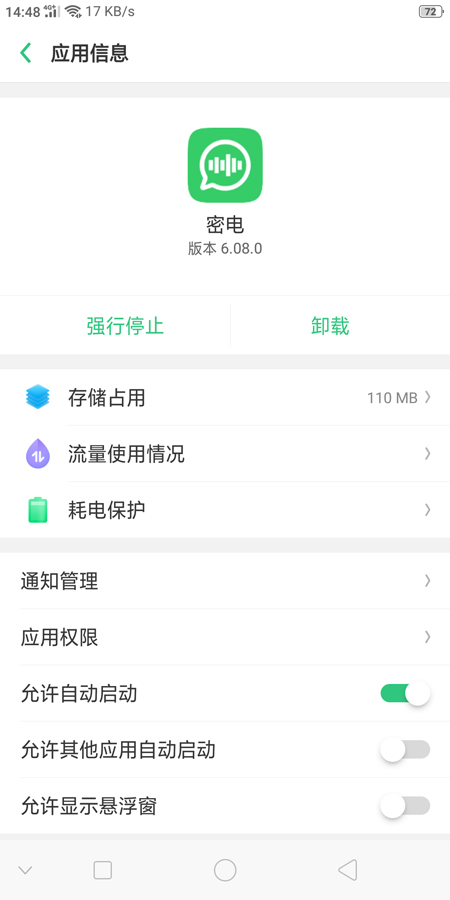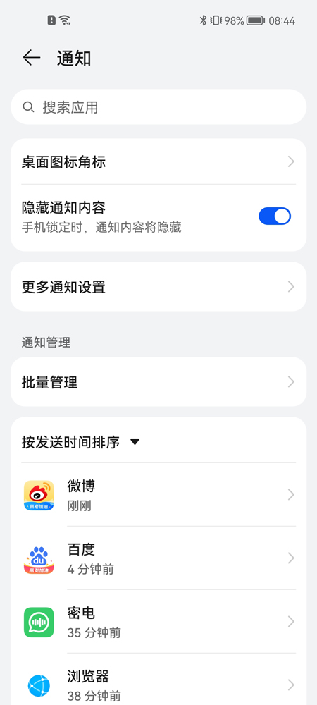 1、打开手机系统的【设置】→【应用管理】,进入密电应用信息,点击【通知管理】。