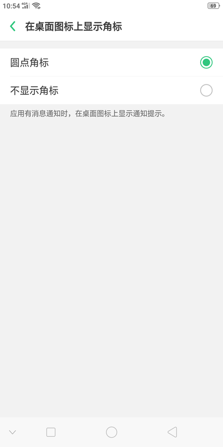 2、打开【在桌面图标上显示角标】,选择【圆点角标】。