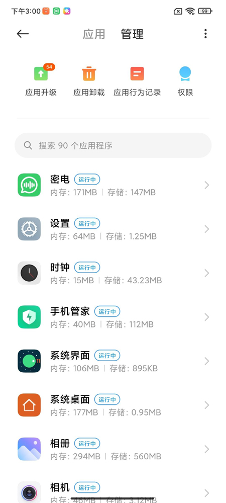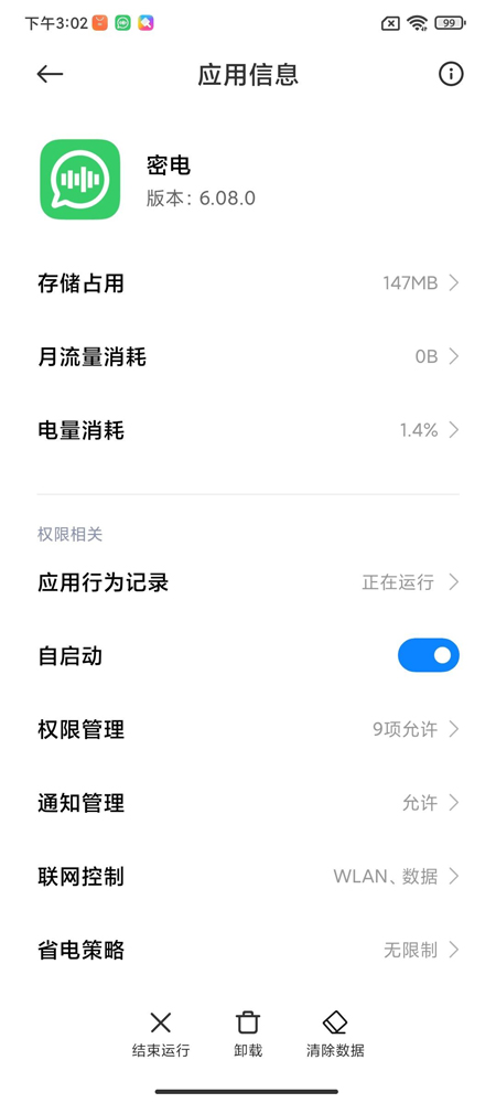 1、打开【手机管家】,点击【应用管理】,选择管理列表下的密电,进入应用信息。