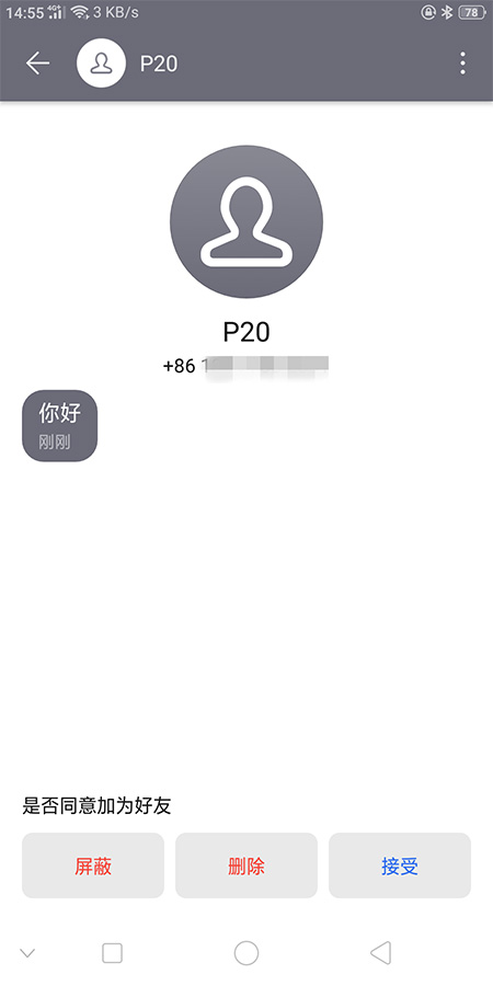 对于密电注册用户,可在搜索后,直接跳转至对话页面后,可直接发送信息给对方,对方可在密电内查看有关内容,点击底部【接受】好友的弹窗认证后,便可成功添加对方为好友,回复信息;