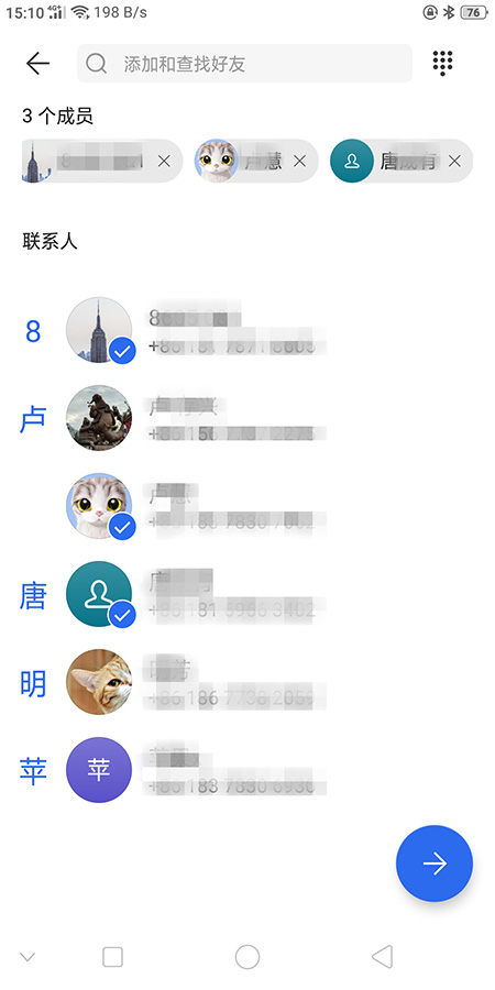 通过电话、二维码、联系人好友列表等方式选择要添加的群成员后,输入群名称,群组即可创建成功。