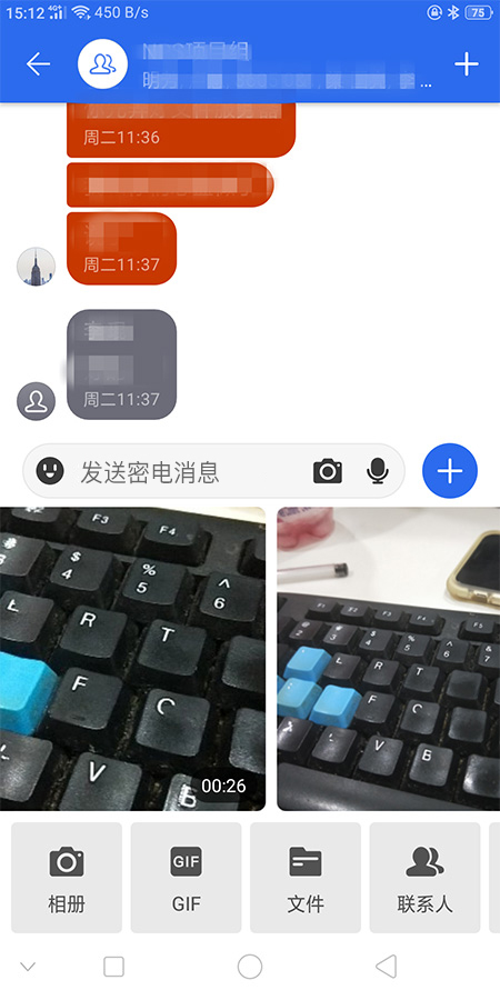 可在群里分享和发送文字、语音、图片、视频、 GIF 图片以及文件、联系人甚至是位置。