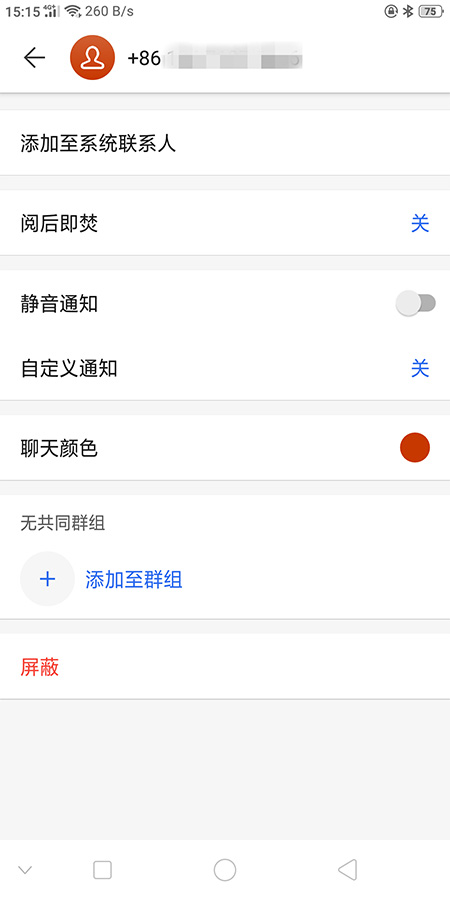 点击对话或群聊中的联系人头像,选择“屏蔽”“屏蔽用户”“屏蔽群组”后,您将不再接收该聊天对话的消息或更新。