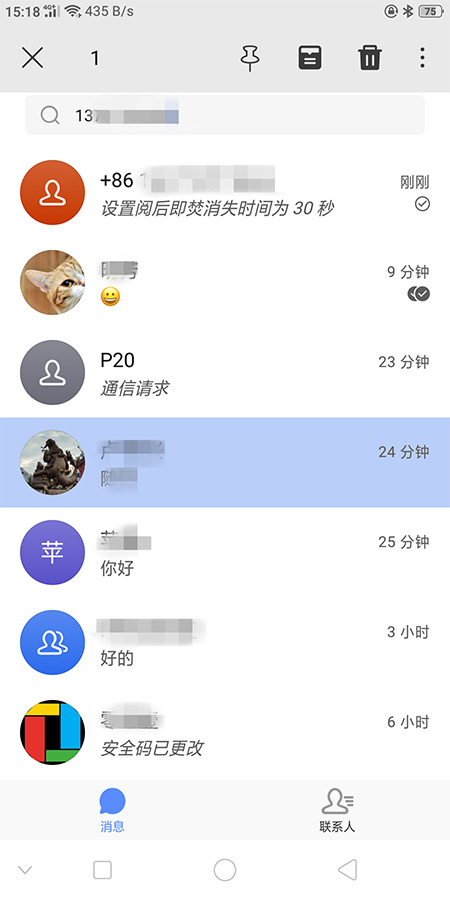 在聊天设置中,可选择开启【阅后即焚】,此后在好友或群组聊天中发送和接收的消息将在阅读后,设置的时间内开始倒计时,如30秒后自动清除,不用再担心隐私的内容被泄漏。