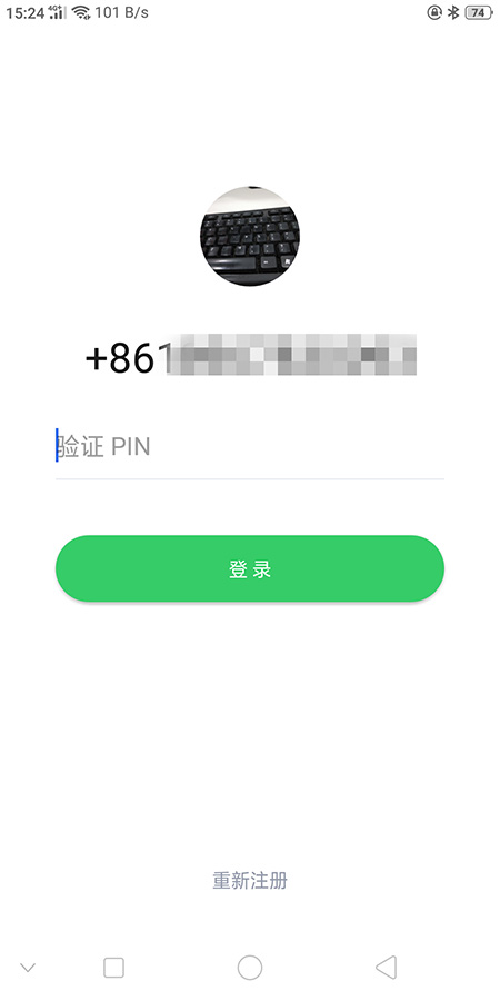 5.直接点击登录页面的【登录】按钮就能重新登录之前账户(之前设置过注册锁定的PIN码的用户需要输入有关密码)