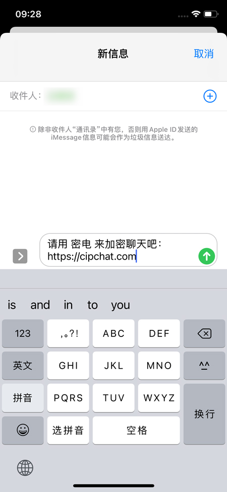 可通过短消息将软件下载链接一键分享给手机联系人或指定电话号码的好友,让小伙伴一同来体验密电端对端加密沟通的安全感。