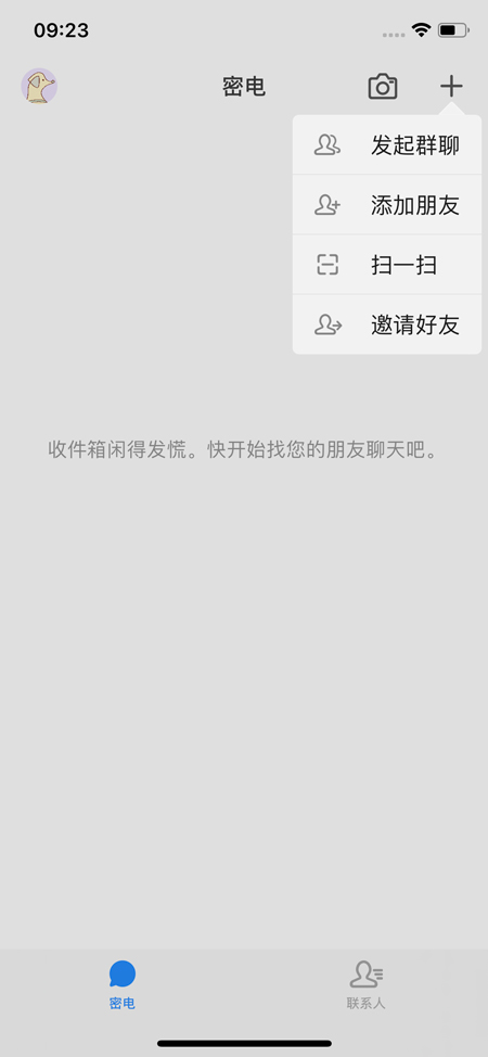 对着密电用户的二维码名片扫描,便可快速添加好友,或进行好友对话。(在【我的】-【我的二维码】中查看)