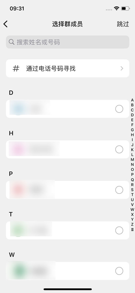 在首页右上角【+】中选择【发起群聊】,或者在【联系人】栏右上角中选择【新群组】后,通过电话、二维码、联系人好友列表等方式选择要添加的群成员后,输入群名称,群组即可创建成功。