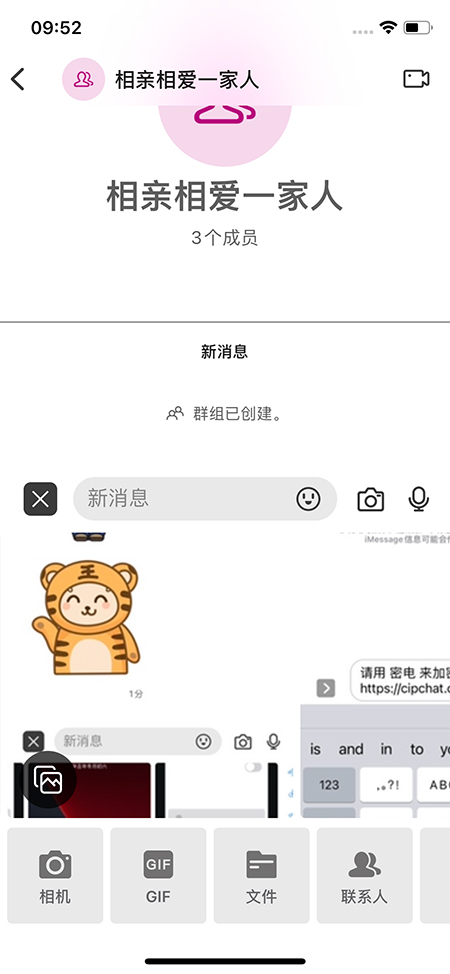 可在群里分享和发送文字、语音、图片、视频、 GIF 图片以及文件、联系人甚至是位置。