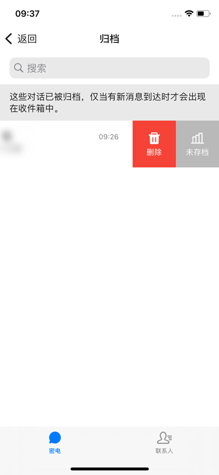 在归档列表中,向左轻扫选择【未存档】,可取消对话存档。
