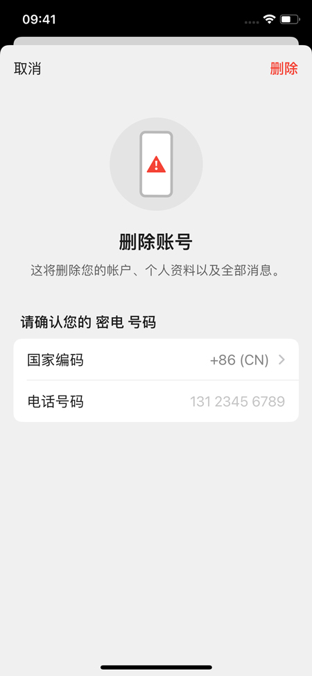 3.【帐户】中,选择【删除账号】,会删除该帐户的个人资料和所有聊天记录等信息。